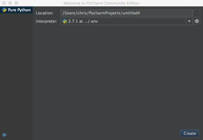 - Interpreter: 是我们选取了哪个解释器,或是virtualenv。简单的解释Interpreter就相当于一个厨师,你现在要新建一个宫保鸡丁的工程,你选择哪个厨师给你做。