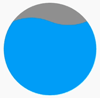 根据我们的需求,我们要模拟出进度框中水位随着进度的增加而不断上升的效果。我们将水看作是一种填充物,然后将填充物划分成最上层的波浪曲线区域以及下层的矩形区域。我们可以利用path.lineTo()和path.close()方法将波浪曲线和矩形组装封闭起来,最终效果如图