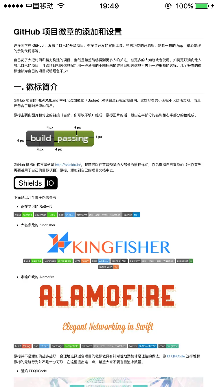 作为一个开发人员,日常经常会需要编写各种各样的文档/材料之类的,个人非常喜欢用 Markdown 来完成这些工作,Markdown 的优点就不再赘述了,大家应该都有过了解,不过目前 iOS 原生并没有提供任何对 Markdown 的支持。所以最近基于 cmark-gfm 把 Markdown 转 HTML 的功能封装了一遍,并且在原有基础上添加了对列表 table 的支持,同时利用 WKWebView 做了一个可直接展示 Markdown 的 View,方便以后使用,现已开源到 GitHub 基于 WTFPL 协议进行分发,需要的同学可以自取。