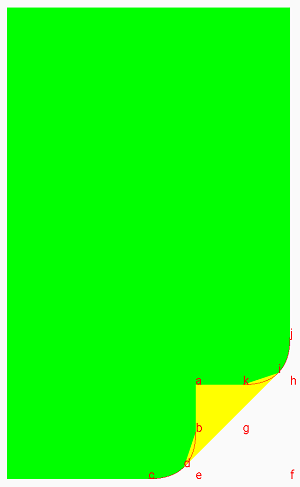 对于一般的书本来说,最左侧应该是钉起来的,也就是说如果我们从右侧翻页,翻动的距离是有限制的,最下方翻页形成的曲线起点(c点)的x坐标不能小于0(上方同理),按照这个限定条件,修改我们的BookPageView