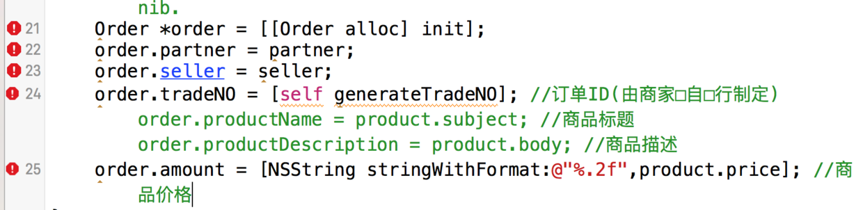 order.tradeNO = [self generateTradeNO]; //订单ID(由商家□自□行制定)