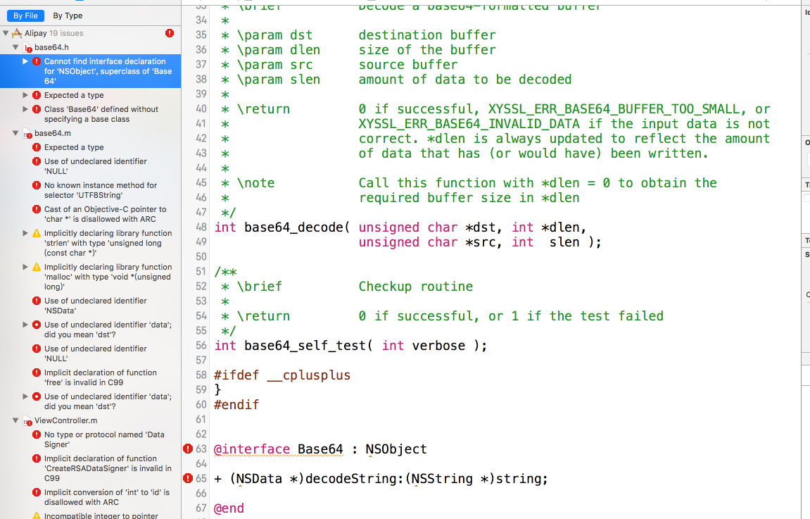 到下载的demo里面找到这两个文件夹和两个文件,将文件拷贝到项目中,导入头文件“DataSigner.h”,重新编译发现啊会出现一堆缺少框架的错误