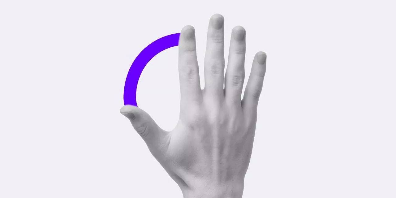 我们的手指肌肉每天都有不同的训练量,拇指和食指会比小拇指更常用。因此,我们手指的力量和灵敏度都有一个高低层次。举个例子,大拇指和食指之间的交互方式会比使用大拇指和小拇指之间的交互方式更好使用并且准确率更高。我们可以利用这种现成的准确率层级体系。例如,拇指和无名指/中指之间的点击可以用作对象透明度的步骤控制操作。