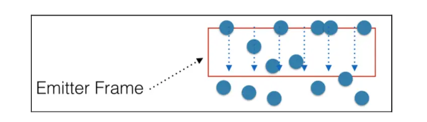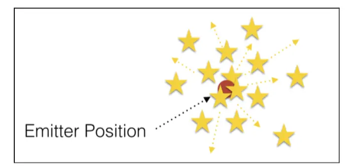- kCAEmitterLayerPoint 设置为该类型,发射器的所有粒子都将从一个相同的点创建。这个点是发射器的position。