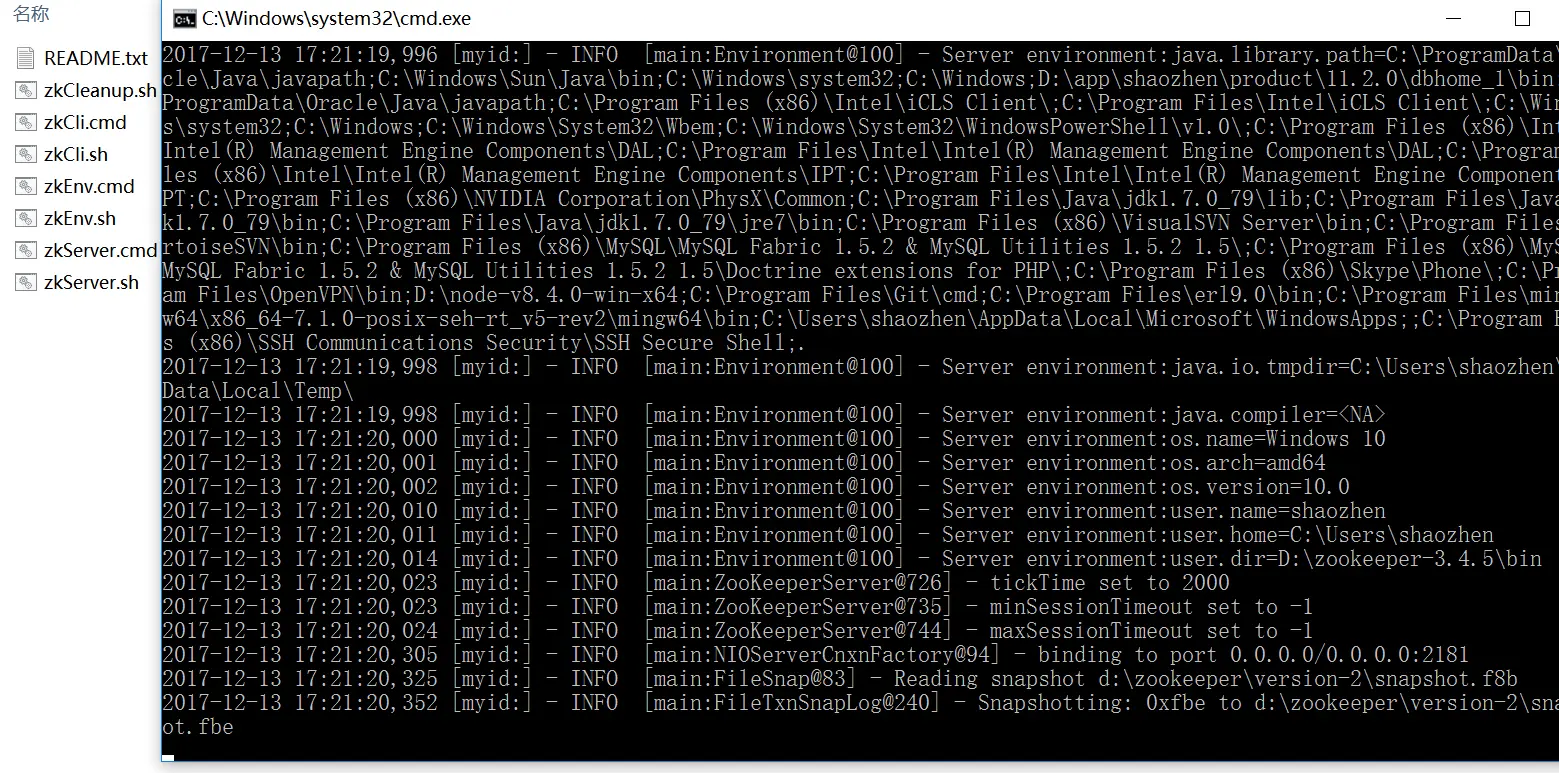 进入到bin目录,并且启动zkServer.cmd,这个脚本中会启动一个java进程