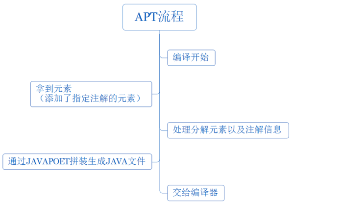 - 在编译器执行的环节,系统收集我们所写注解的元素,并将这些元素组合成Java代码