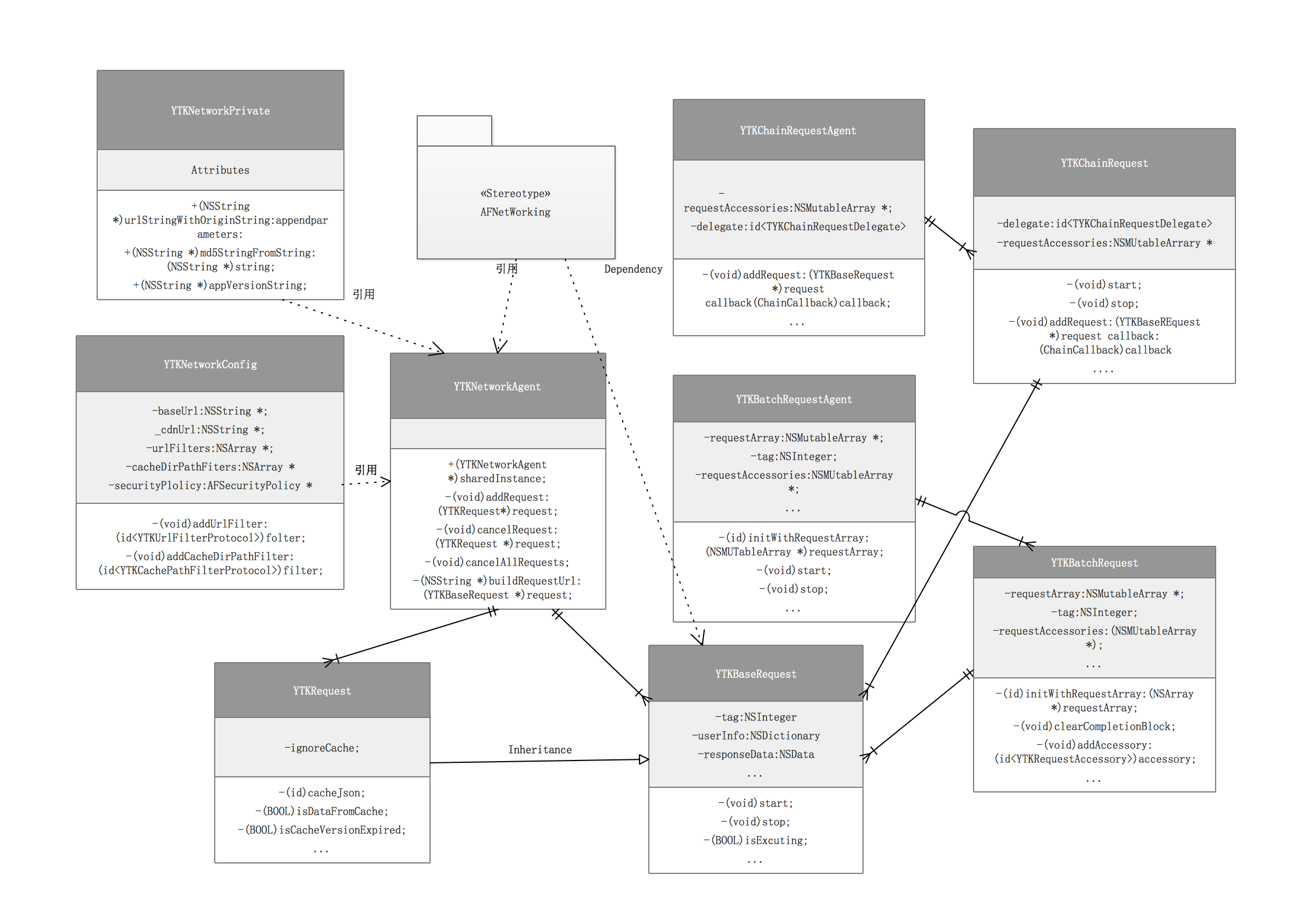 - 支持批量的网络请求发送,并统一设置它们的回调(实现在YTKBatchRequest类中)