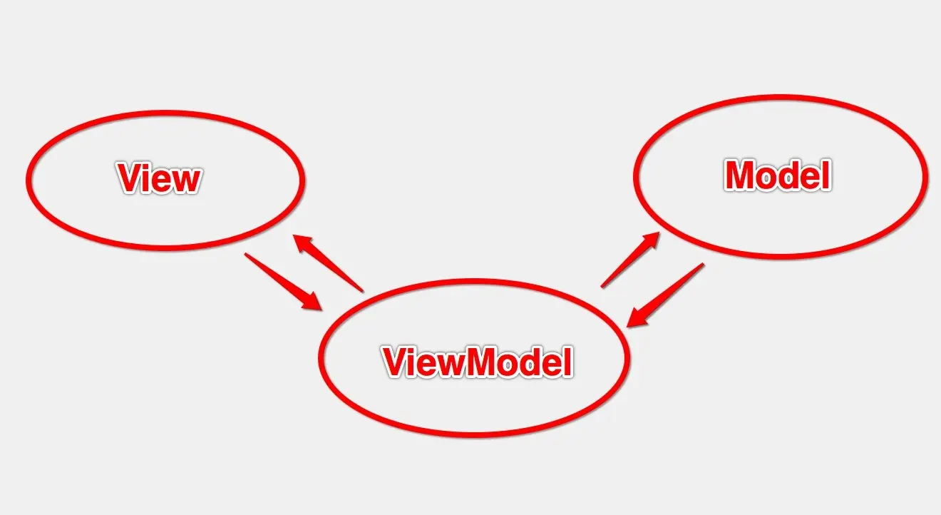 响应式编程 也是由MVC来演变过来的, 和MVC相比的话, 我们的V取代了C中的业务逻辑处理, ViewModel并不是单纯的业务逻辑类, 和我们的View和Model是相互关联的, 并且进行了双向的绑定 假如说我们要添加点击事件,我们可以在ViewModel中来处理点击方法逻辑, 然后在我们View中导入ViewModel, 在View中点击调用点击方法的具体逻辑就可以了