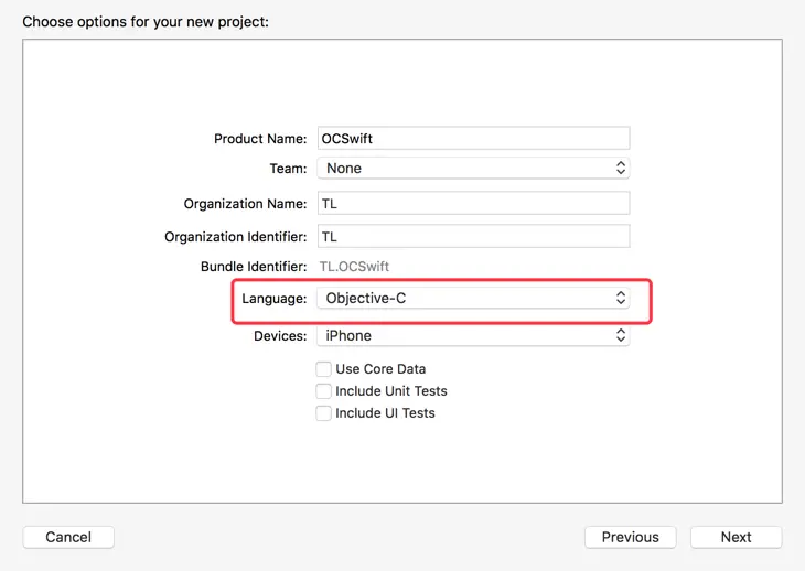 1、打开 Xcode ,新建一个 OC 项目
