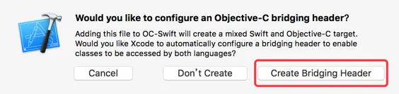 3、出现提示,选择 Create Bridging Header ,完成创建