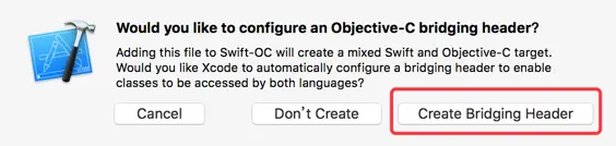3、然后会出现如下提示,选择 Create Bridging Header