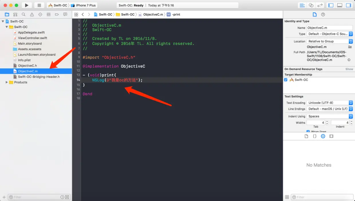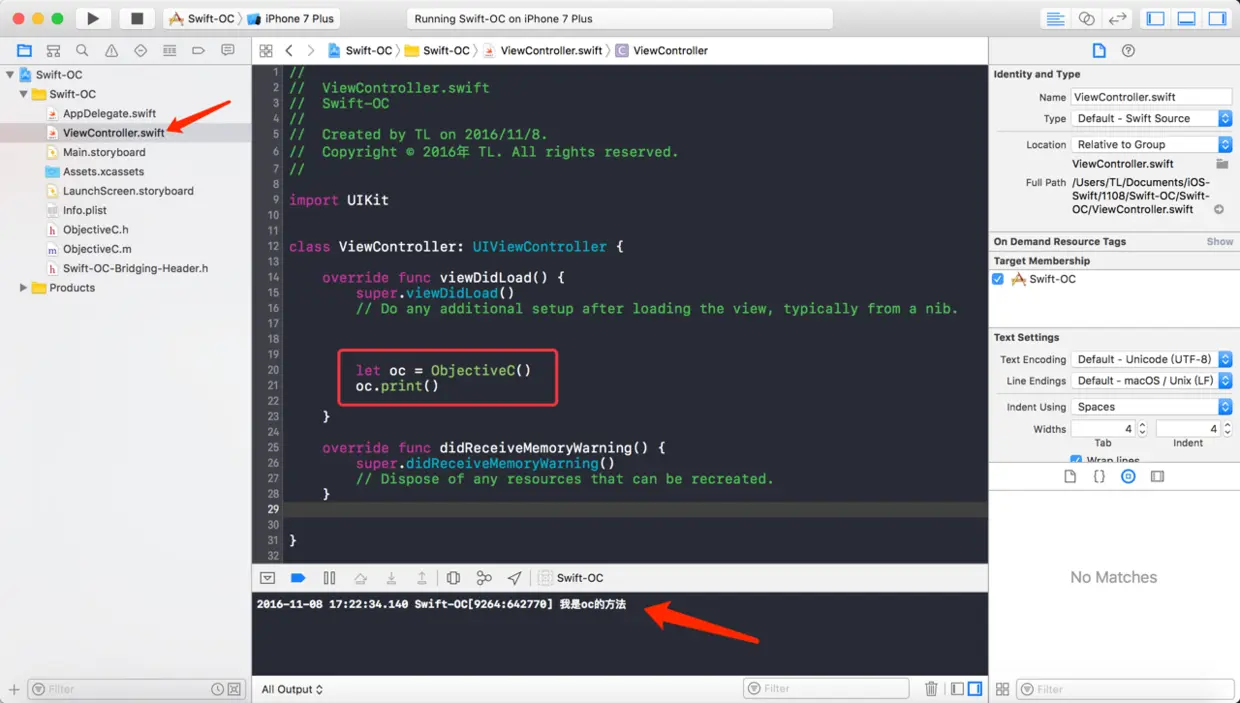 4、我们接着往下走。在 Swift-OC-Bridging-Header.h 中加入 "ObjectiveC.h"