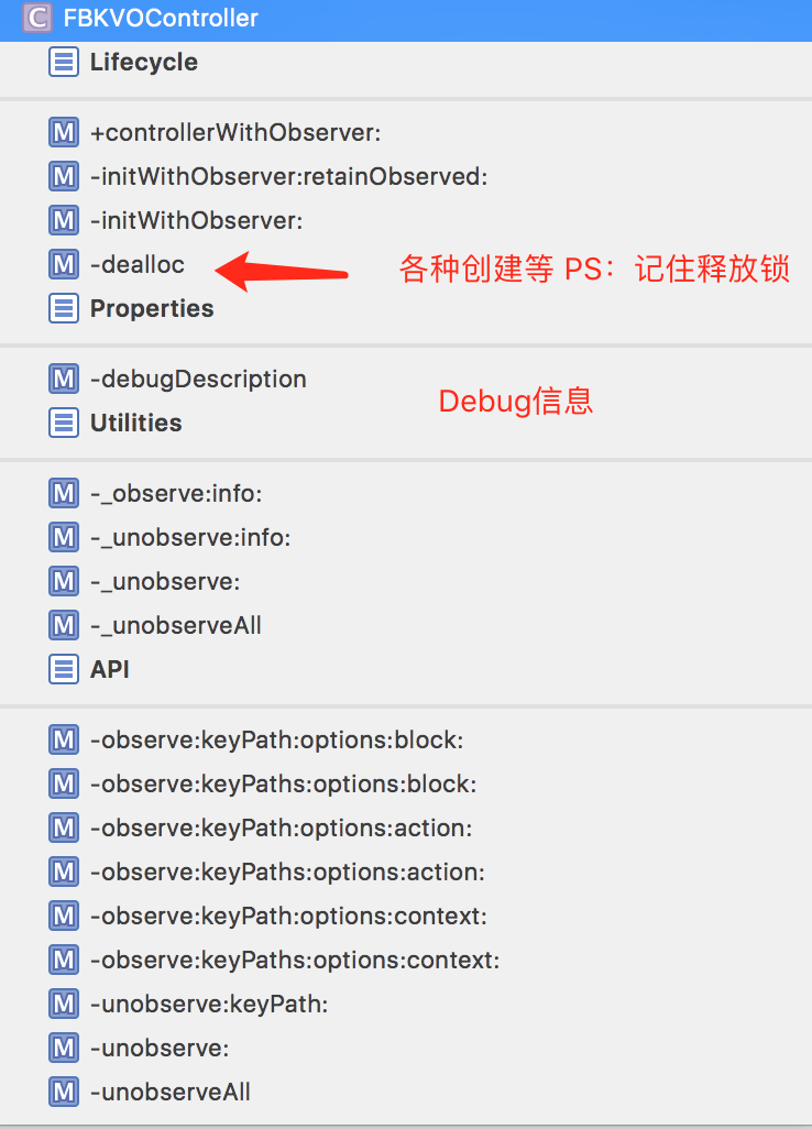 _FBKVOInfo 一共8个方法,其中5个是初始化方法,一个Debug文本,一个Hash一个equal判断。