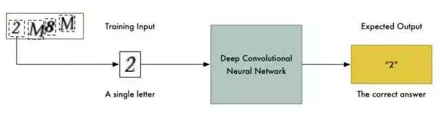 幸运的是,一个 CAPTCHA 图像由四个符合组成,因此我们可以以某种方式将图像分割开以令每张图像只有一个符号。这样的话我们只需训练神经网络识别单个字符就行了。