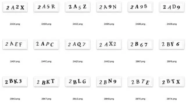 想要训练任何机器学习系统,我们都需要相应的数据集。为了破解 CAPTCHA 验证码系统,我们需要这样的训练数据: