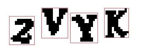 随后将每个区域保存为一个单独的图像文件就非常简单了,而且我们也知道每张图像从左到右有四个字符,因此我们可以在保存的时候使用这种知识标注各个字符。我们只需要按顺序保存它们,并将每一张图像保存为对应的字符名。