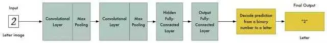 因为我们一次只需要识别单个字符,所以并不需要一个复杂的神经网络架构,且识别这种字母与数字的任务要比其它识别复杂图像的任务简单地多。因此我们使用了一个简单的卷积神经网络,它一共包含两个卷积层与两个全连接层。