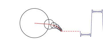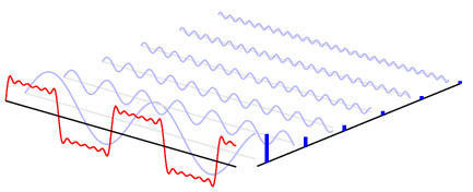 离散余弦变换(Discrete cosine transform),简称DCT。离散余弦变换属于傅里叶变换的另外一种形式,没错,就是大名鼎鼎的傅里叶变换。傅里叶是法国著名的数学家和物理学家,他认为任何周期性的函数,都可以分解为为一系列的三角函数的组合,这个想法一开始并没有得到当时科学界的承认,比如当时著名的数学家拉格朗日提出质疑,三角函数无论如何组合,都无法表达带有“尖角”的函数,一直到1822年拉格朗日死后,傅里叶的想法才正式在他的著作《热的解析理论》一书中正式发表。金子总会闪光,傅里叶变换如今广泛应用于数学、物理、信号处理等等领域,变换除了它在数学上的意义外,还有其哲学上的伟大意义,那就是,世上任何复杂的事物,都可以分解为简单的事物的组合,而这个过程只需要借助数学工具就可以了。但是当年拉格朗日的质疑是正确的,三角函数的确无法表达出尖角形状的函数,不过只要三角函数足够多,可以无限逼近最终结果。比如下面这张动图,就动态描述了一个矩形方波,是如何做傅里叶分析的。