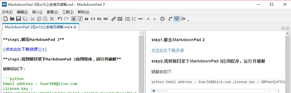 MarkdownPad 2 是一款较不错的Markdown编辑器,可快速将文本转换为美观的HTML/XHTML的网页格式代码,且操作方便,用户可以通过键盘快捷键和工具栏按钮来使用或者移除Markdown格式,左右栏的分割方式令用户可以实时看到 HTML 格式的 Markdown 文档。如果你喜欢在简书、CSDN等平台发表文章,也想掌握这门简单的轻量级的标记语言Markdown,又担心离线无处编辑,欢迎尝试。具体方法和资源如下: