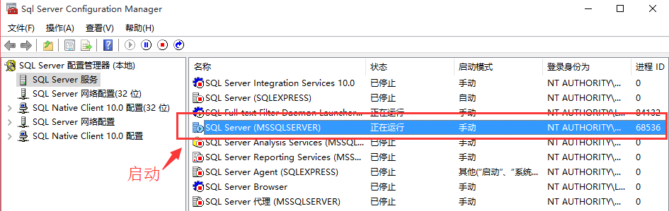 开启SQL数据库服务: