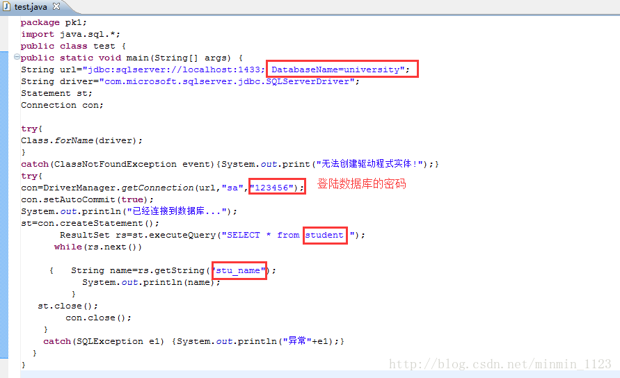 con=DriverManager.getConnection(url,"sa","123456");