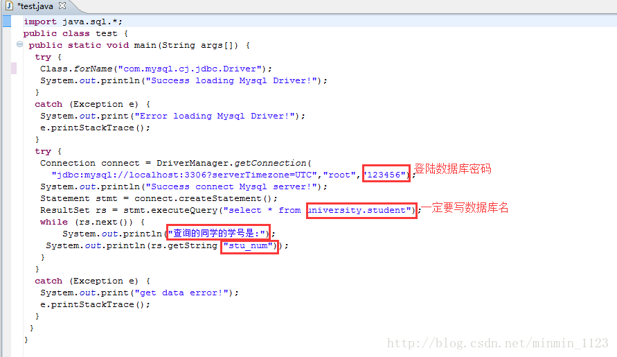 System.out.println(rs.getString("stu_num"));