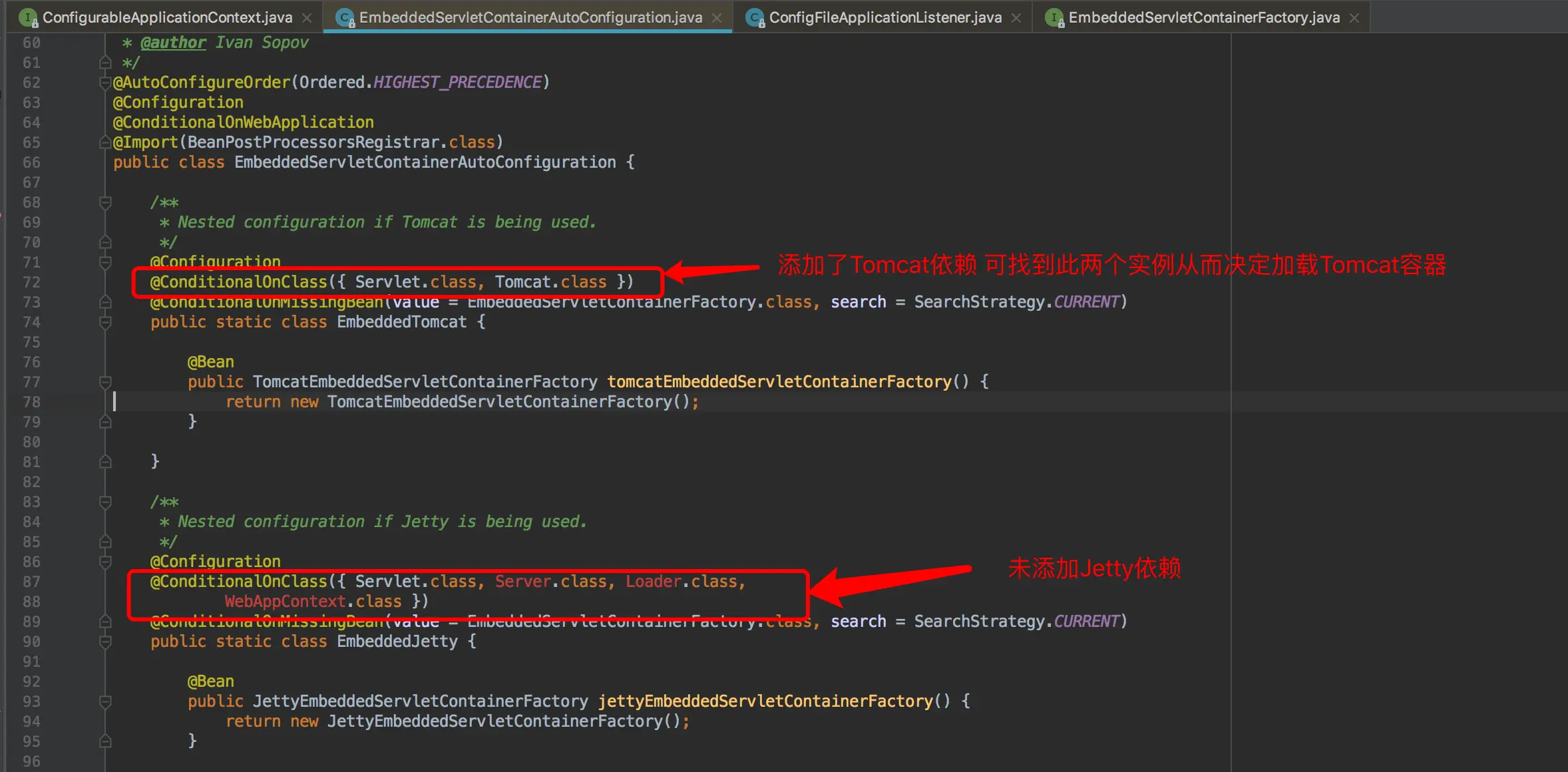 在做Demo时我尝试引入Tomcat、Jetty两个依赖,最后微程序选择启动了Tomcat。