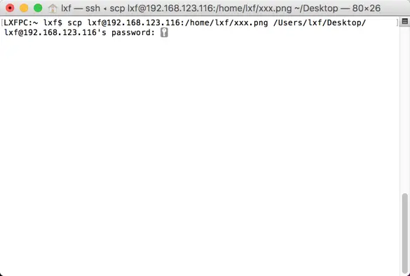 scp -r lxf@192.168.123.116:/home/lxf /Users/lxf/Desktop/