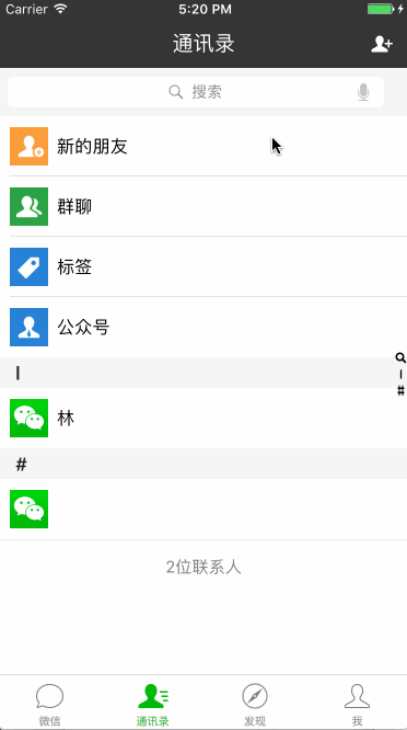 关于UISearchController的设置就不多说了,可以参考《UISearchController仿微信搜索框》或者自行上网查找。 情况 本人想实现微信通讯录上方的搜索框功能,但在搜索框的取消按钮的设置这个卡住,在网上搜了个遍,没有合适的做法,经过不懈的探索,终于找到解决方案,遂前来记录一下。