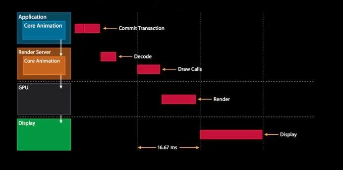其次,和用户直接进行交互的就是UI元素。在发生卡帧、掉帧的性能问题时,用户对静止界面和动画的感知是完全不同的。即便只有1帧页面丢失,在动画中也能轻易的被用户捕捉。举个例子,当用户按下按钮,应用推迟了1、2帧才开始跳转。又或者是在界面跳转时丢失帧数据,具体表现为卡帧,此时用户对于卡顿的感知是远远大于平常的,因此了解隐式动画过程中如何发生卡顿是很有必要的。