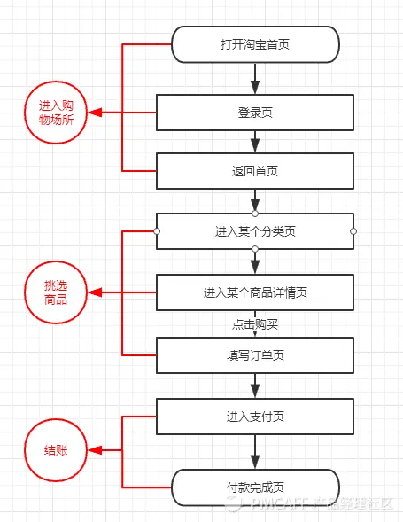 下图以淘宝为例,展示出了网购的页面流程。