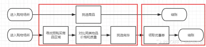 不管是否理解上述定义,下面带着抽象思维去思考购物行为的业务流程图应该是什么样的?
