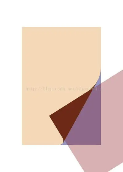还不够完美,可以观察到翻起的当前页背面还有一些空白的地方没有绘制内容,这是因为C区域的内容是通过当前页矩形翻转、旋转、位移后得到的,所以也是矩形,自然不能覆盖曲线的边缘区域。我们需要对这些边缘区域进行处理,根据背景的复杂度需要不同的处理方法,因为我们是纯色背景,所以处理起来会方便一些,这里只给出纯色背景的处理方案,其他背景图案大家自行扩展即可