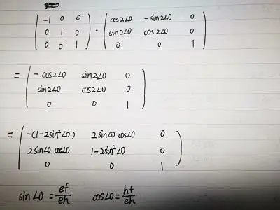 我们按之前的分析先翻转后旋转,旋转角度为两倍角0计算,计算过程为