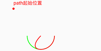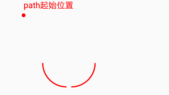 绘制圆弧,若forceMoveTo为false,则用法和arcTo(RectF oval, float startAngle, float sweepAngle)一样,绘制圆弧之前不会移动(moveTo)path画笔位置。若为true,先强制调用moveTo移动path画笔至圆弧起点,再绘制圆弧。ps:如果调用arcTo(RectF oval, float startAngle, float sweepAngle,boolean forceMoveTo)方法之前没有对path进行任何操作,则forceMoveTo设置true或false效果都和设置true一样