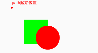 前面的表格我们提到参数op共有五种运算逻辑可选,下面我们就来看看这五种运算逻辑是如何影响两个Path之间的关系的,我们先用不同的颜色绘制出一个矩形和一个圆形,观察一下它们的位置和关系
