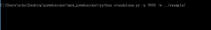 3、开启服务,输入命令:sudo python standalone.py -p 9998 -w ../example/(windows系统请输入:python standalone.py -p 9998 -w ../example/)。输入后没啥效果,只是光标下移了一行而已;(注意注意啦~服务开启后,命令窗口不要关,关了服务就关闭了)