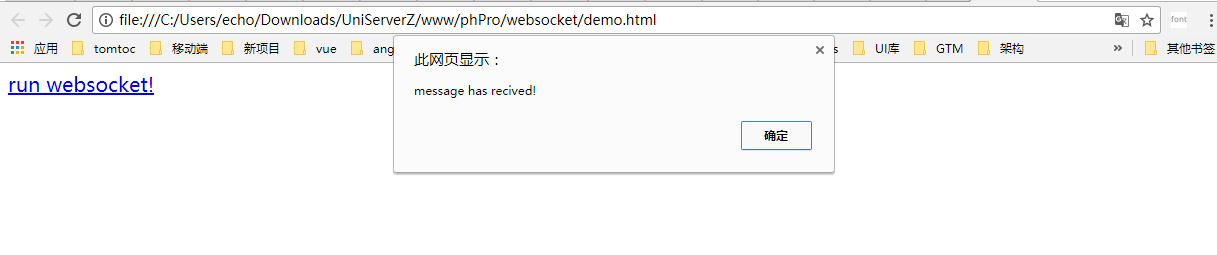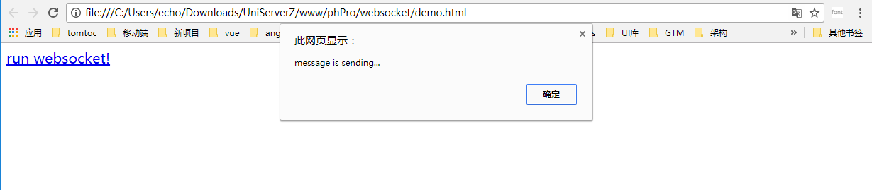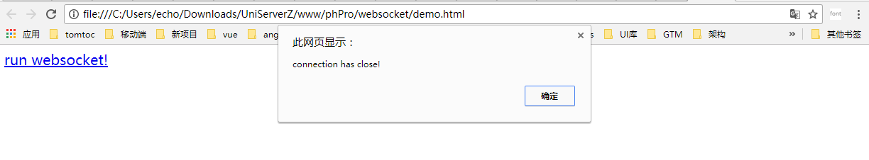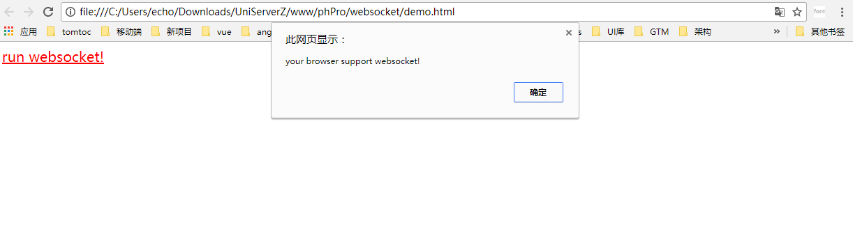 打开demo.html文件,点击run websocket!,如果浏览器支持的话就会显示以下结果。