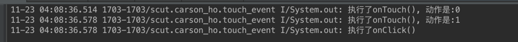- 如果给控件注册了Touch事件,每次点击都会触发一系列action事件(ACTION_DOWN,ACTION_MOVE,ACTION_UP等)