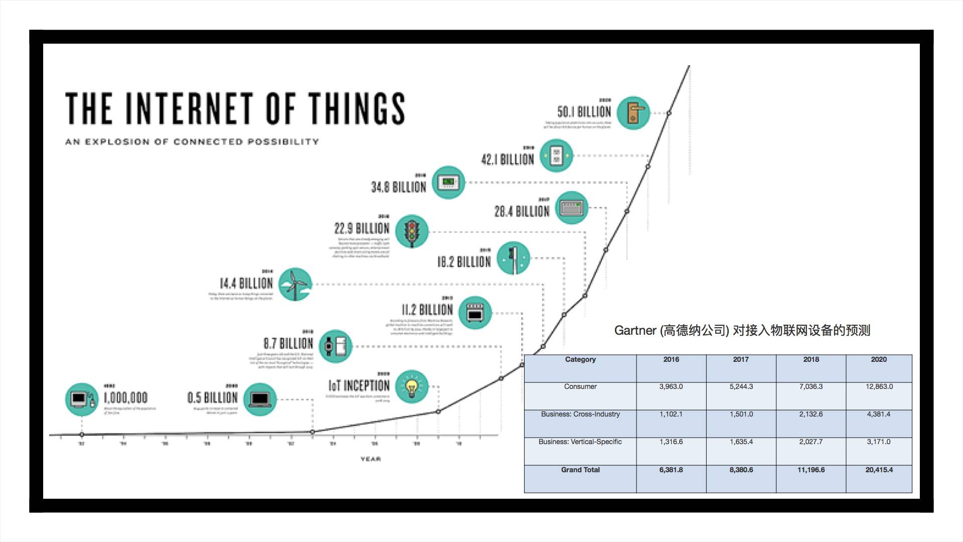 上面说到的这些,都是我们定下的一张物联网蓝图,它的节点互相连通,可是并不固步自封地选择在自己的网络中闭合。因为我们意识到,这样一张蓝图,接入到应用层,接入到企业服务中会产生巨大的效应。