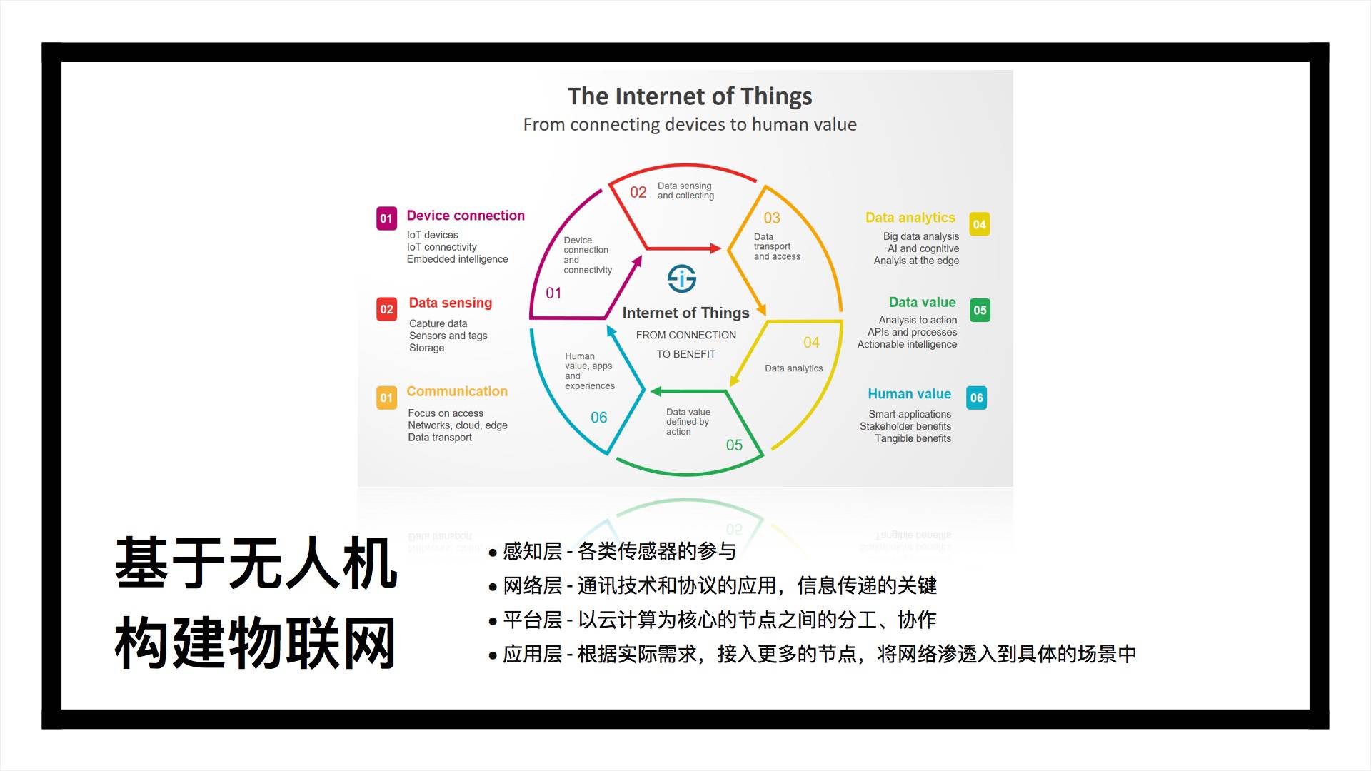 无人机过去十年最大的变化在于它具备了联机能力,这让无人机能像智能手机一样,可以连接人、物、网络,并进行信息交换和通信,从而构建出一个以无人机为主的物联网信息世界。