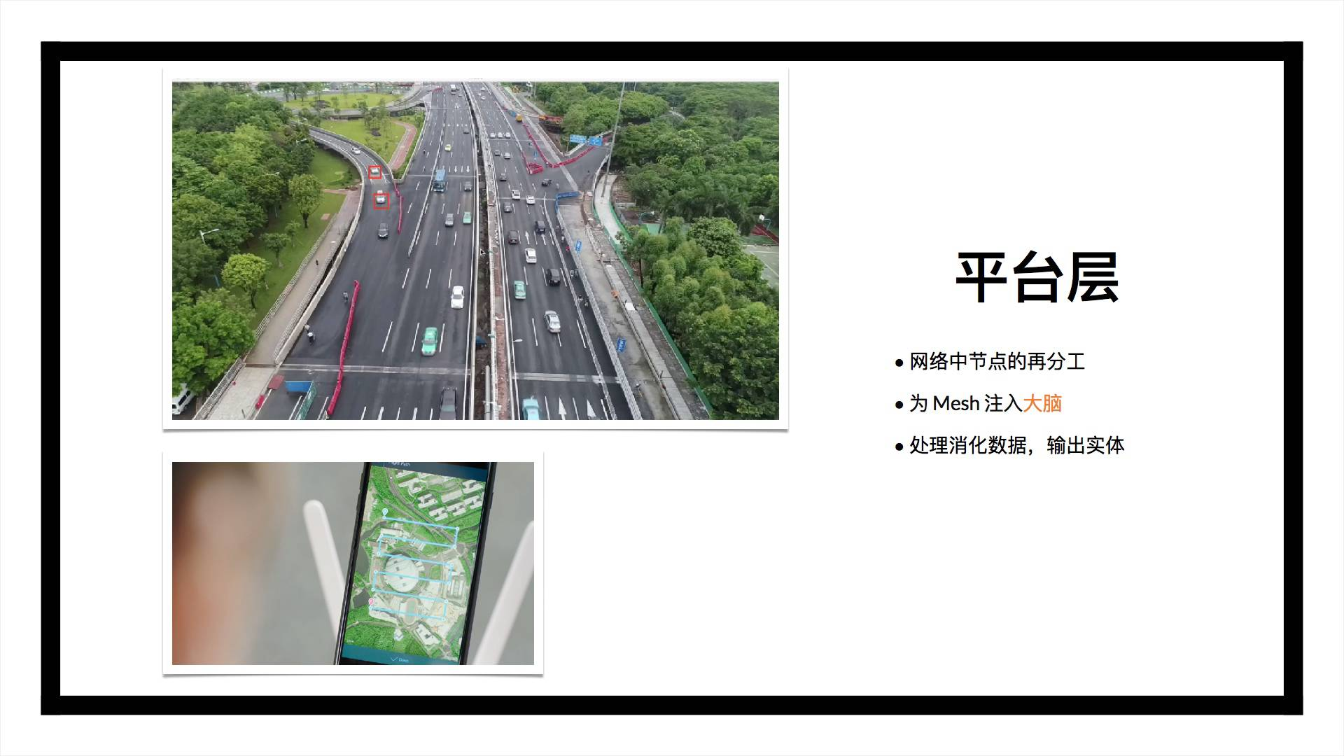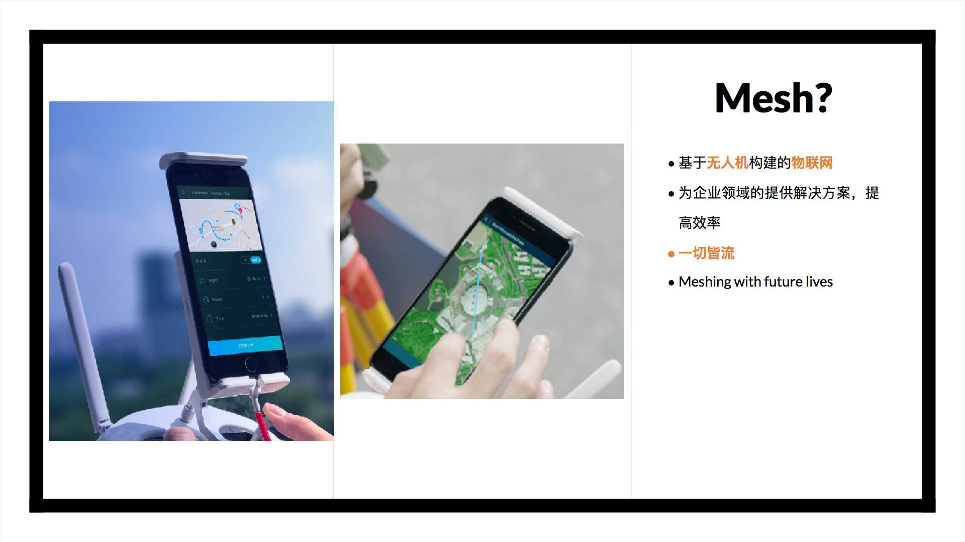 说到这里,好像已经说完了,我们展示了 Mesh 是怎样从无人机这一个点,连通更多的设备和服务,组成一张网络的。但其实,我们的愿景远不如此。