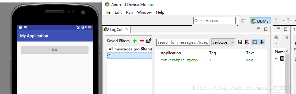 在括号内部new一个匿名监听器对象,然后直接重写方法onClick。这时运行app并点击登录按钮,从Log日志可见onClick事件被触发了: