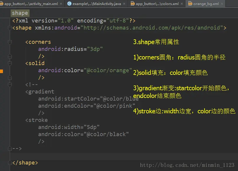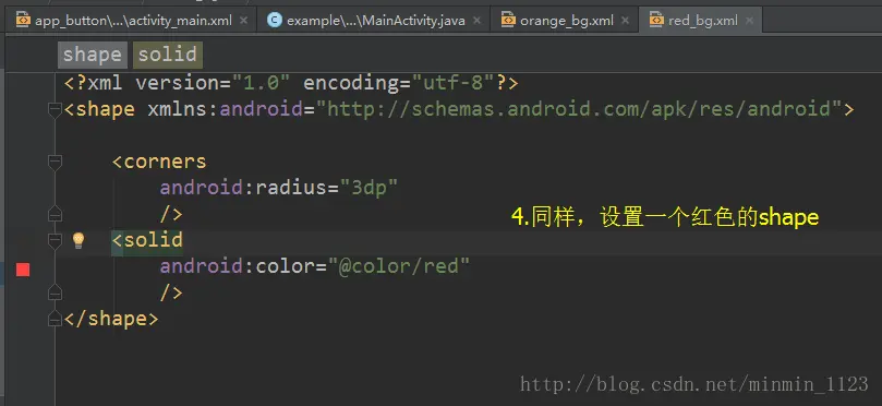 因为本例需要给按钮两个背景颜色,而shape是就是用于定义形状的。过程讲解见下图: