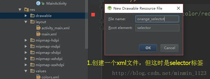 step2.在drawable文件夹下新建xml文件,selector标签。