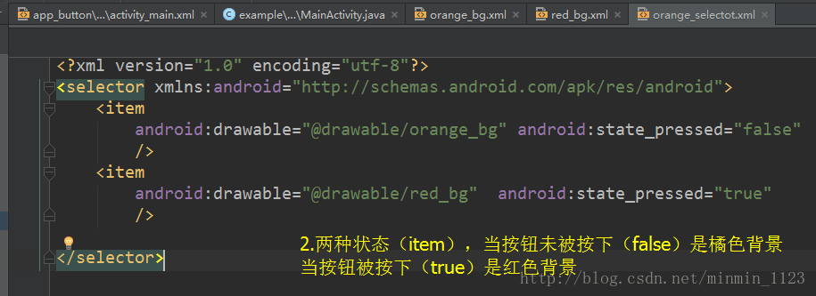 光有两个图形还不够,我们需要selector将两者联系在一起。过程讲解见下图: