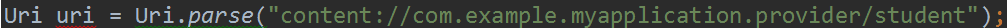 以上篇最后做的关于数据库的demo为例,它的包名是com.example.myapplication,如果其他程序想访问该程序student.db中的student表,那么需要的内容URI如图所示: