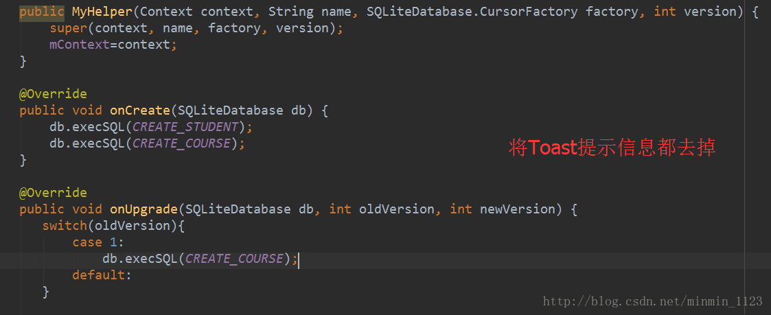 先修改MyHelper,将Toast提示语句都去掉,因为跨程序访问时我们不能直接使用 Toast。