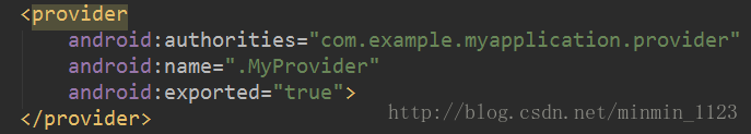最后将MyProvider在AndroidManifest.xml文件中注册,一个自定义内容提供器终于完成了!