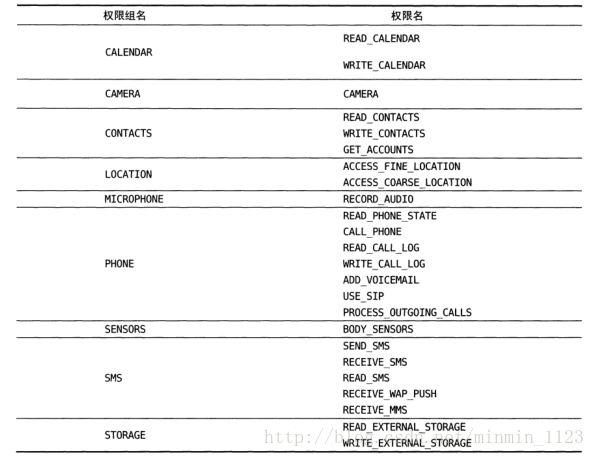 需要运行时权限的就是下图这几个: